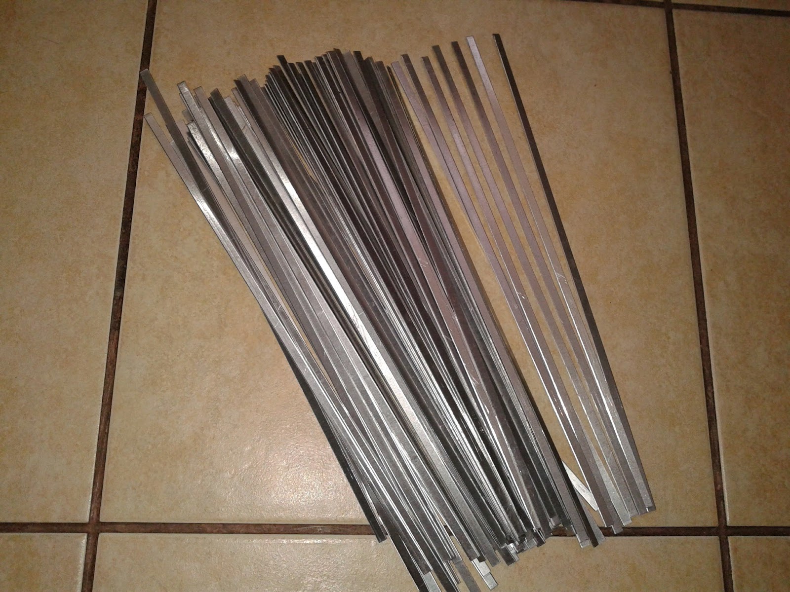 Pocięte 5 mm paski z blachy aluminiowej o grubości 1 mm.