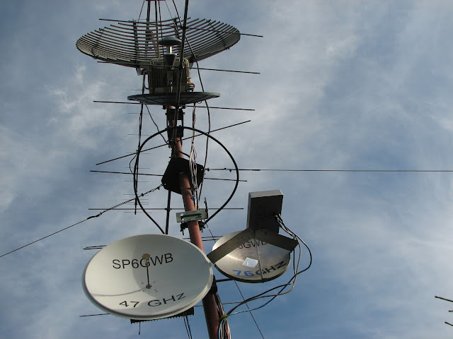 Zawody minęły pod znakiem oczekiwań na dobre tropo, które , niestety, zaszczyciło tylko północną Polskę. W moim QTH JO80JG 1150 m asl warunki były przeciętne, choć aktywność w OK i DL spora. Zrobiłem następujące ilości QSO : 2.3 GHz 18 qso , odx 633 km 3.4 GHz 20 qso, odx 427 km 5.7 GHz 23 qso, odx 427 km 10 Ghz 35 qso, odx 427 km 24 GHz 4 qso odx 100 km 47 GHz 4 qso odx 128 km 76 GHz 0 qso Łacznie 104 qso, za to towarzystwo ryczących jeleni w pobliżu, hi ! Nowe pasmo nie wypaliło, nie miałem bliżej korespondentów, a warunki na wysokich mikrofalach były słabe. Sprzęt ten sam co w poprzednich zawodach. 73's de Staszek SP6GWB